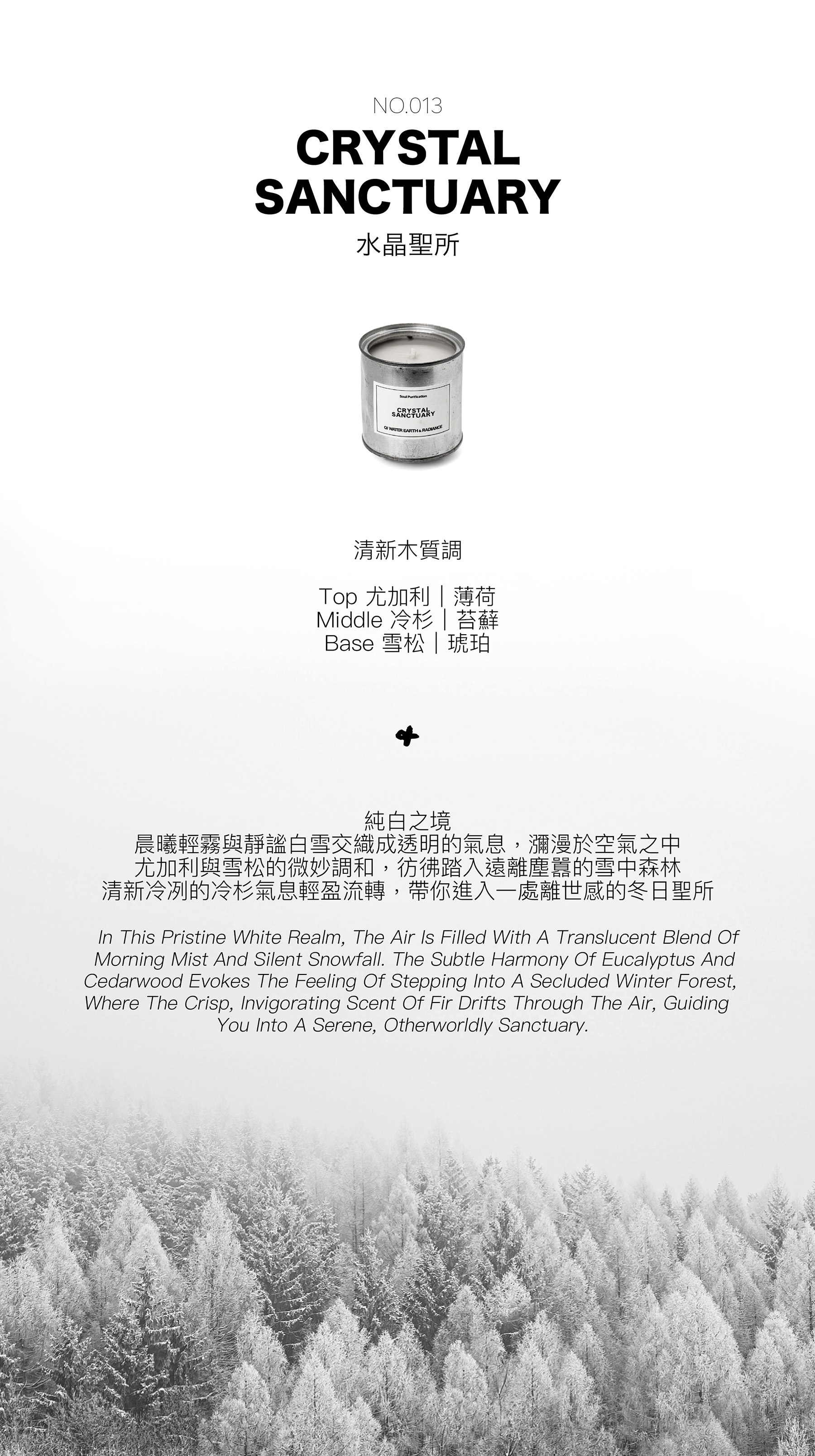 水晶聖所的香氛帶來遠離尘囂的逃避,宛如雪中聖地般的清新與寧靜,