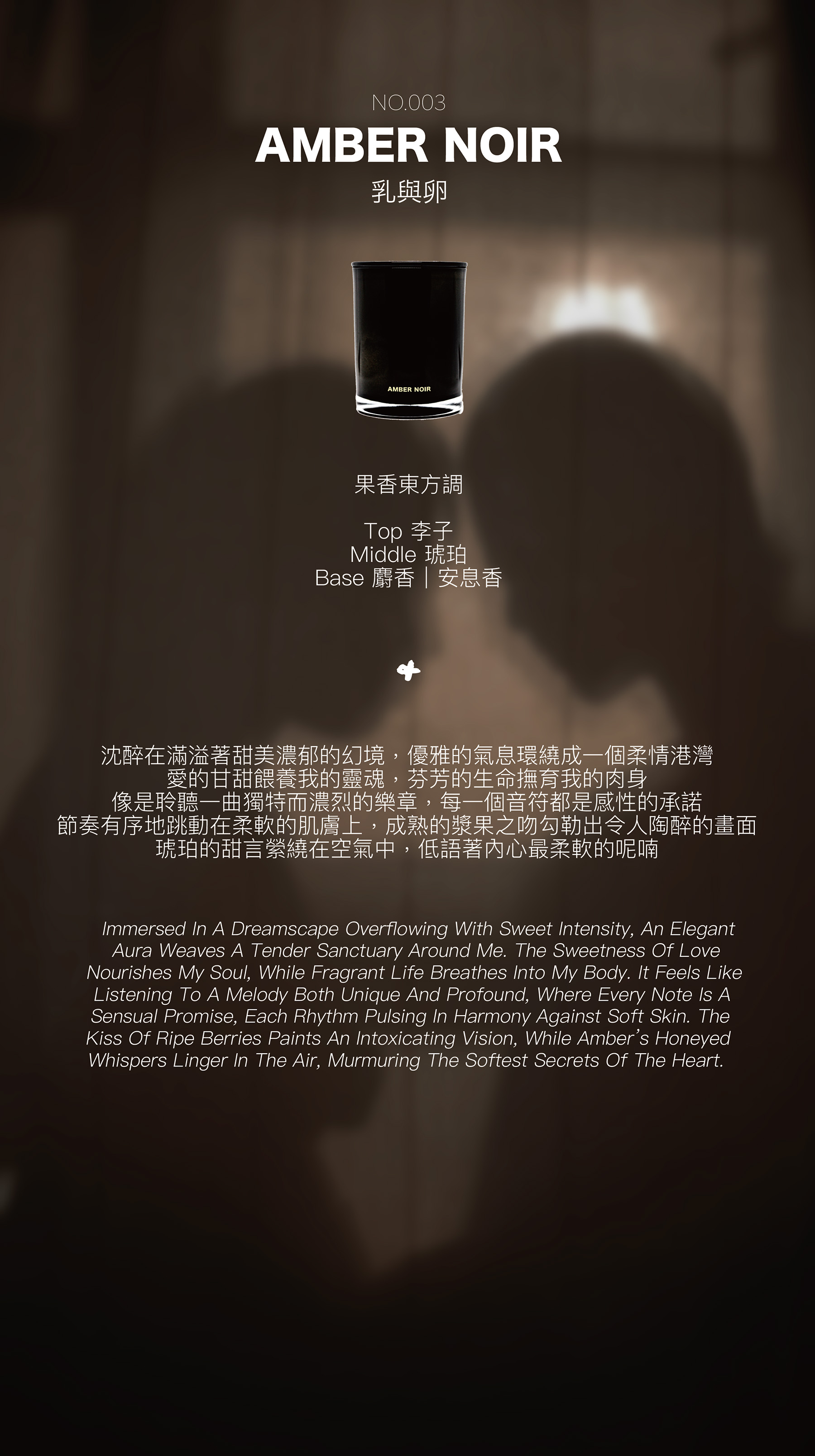 熟成的漿果輕啄肌膚,溫暖的琥珀與麝香層層交織,